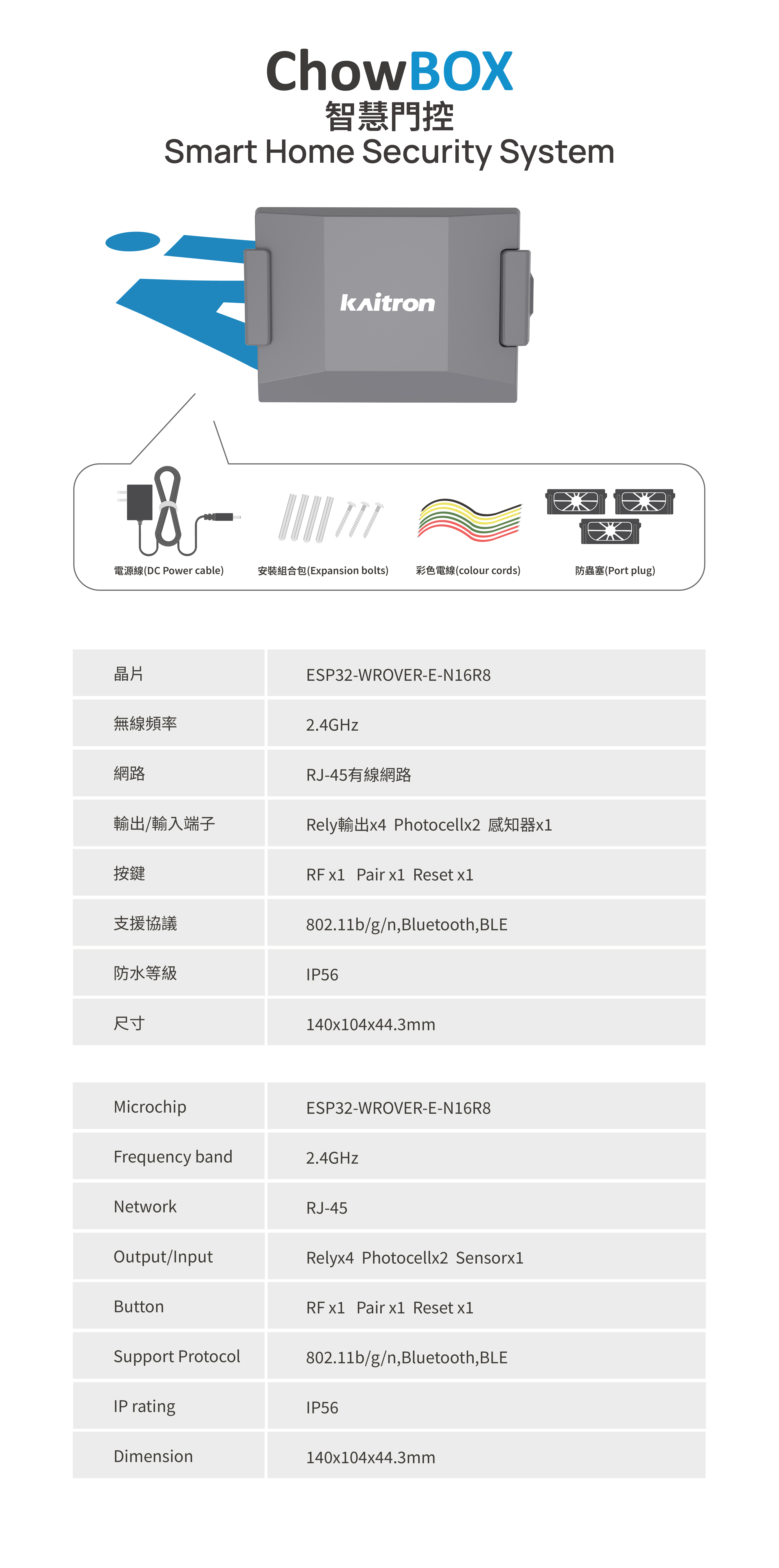 • 最多支援4組自動門及20個無線防水開關門偵測器